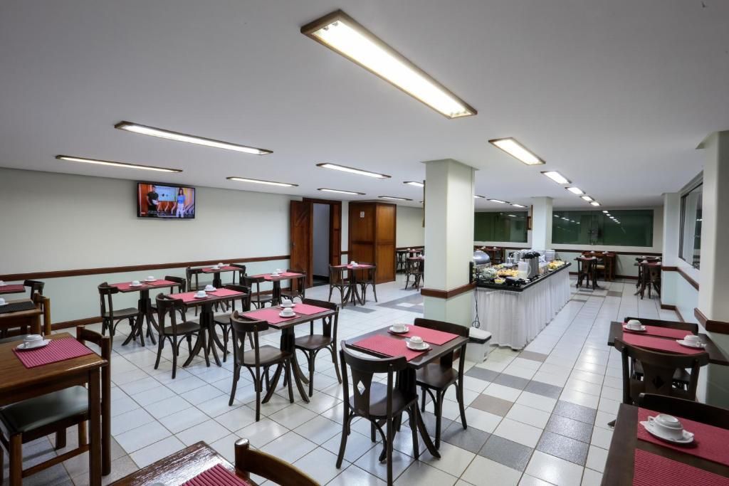 O Hotel possui café da manhã, espaço para reuniões, lavanderia e recepção 24 horas.